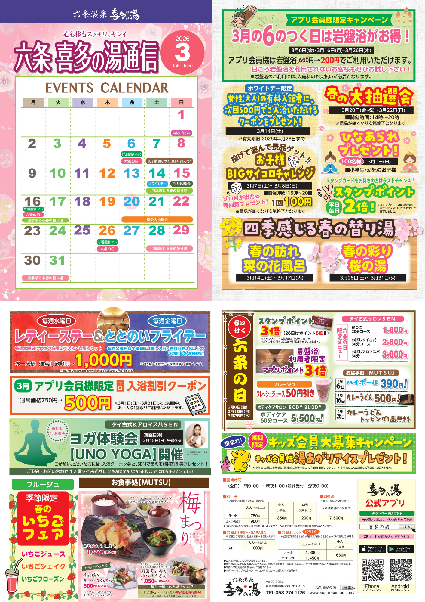 六条温泉からのお知らせ