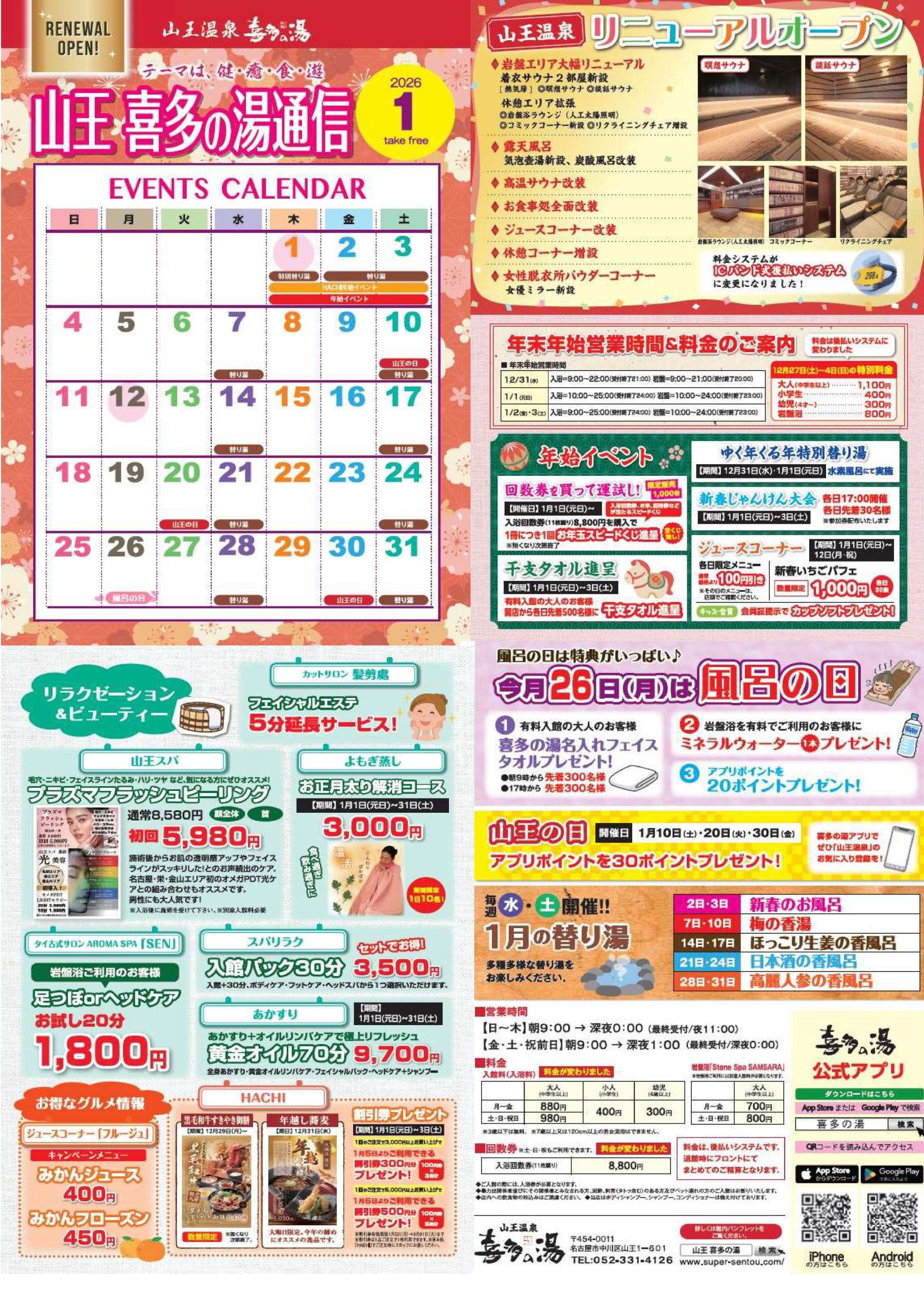他の喜多の湯の回数券をお持ちのお客様が、山王温泉 喜多の湯をご利用される場合は、「回数券 + 追加料金」を頂戴いたします。ご了承下さいませ。