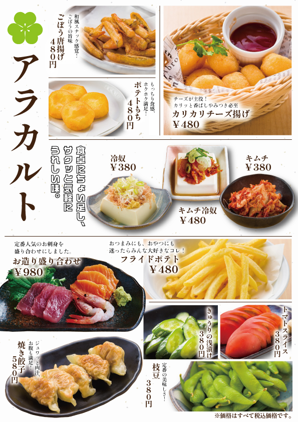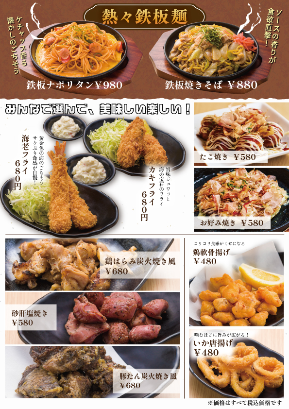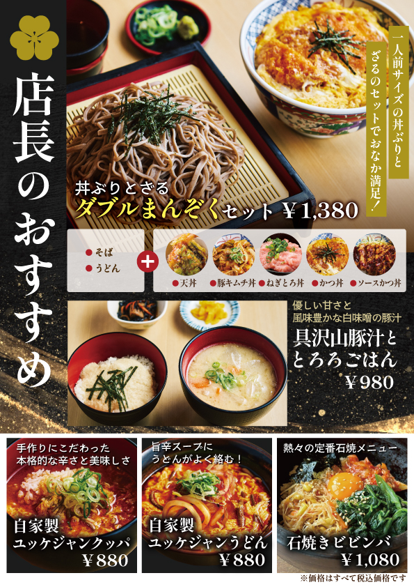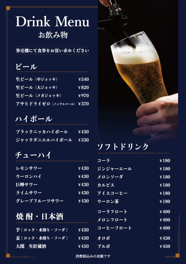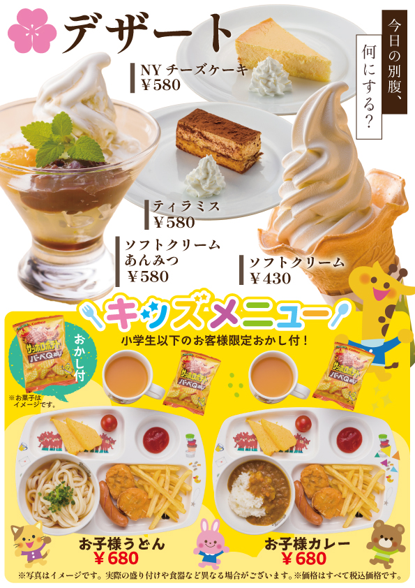 ※価格・メニューは予告なく変更する場合がございますので、館内のメニュー表をご確認の上ご利用下さい。