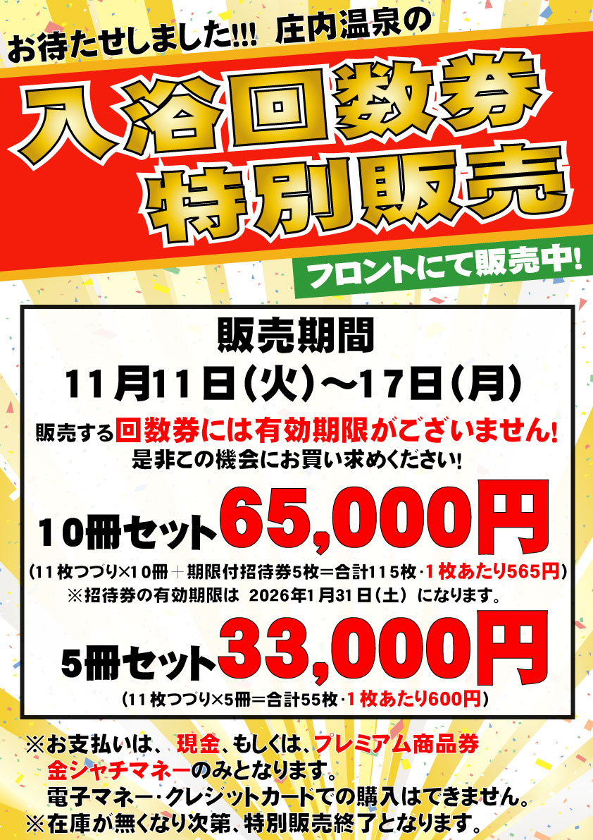 入浴回数券特別販売!