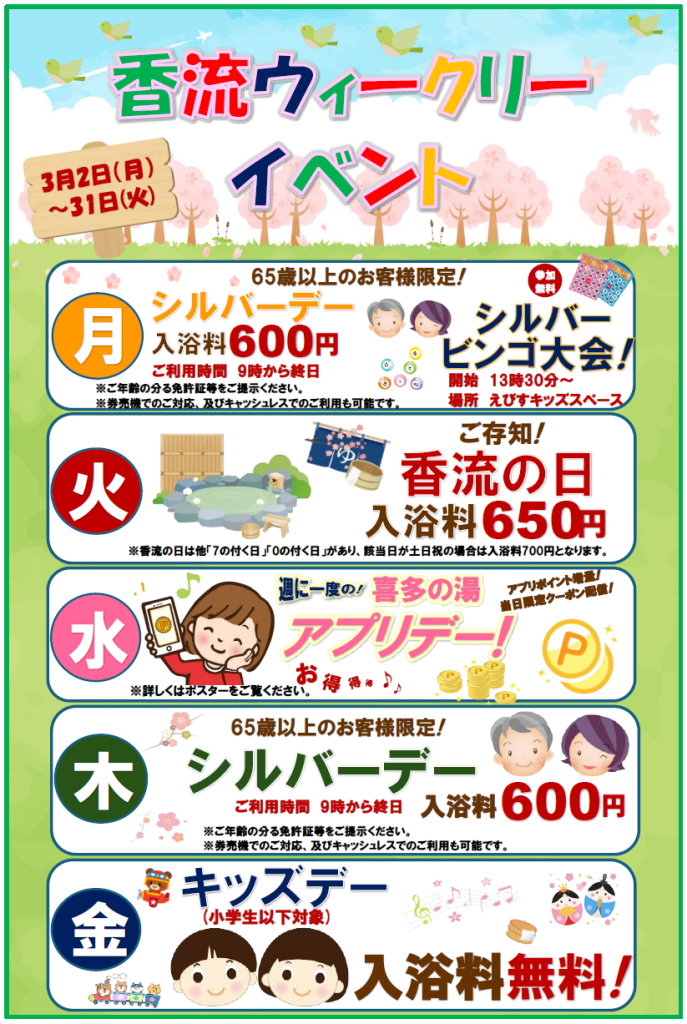 香流温泉 3月イベントのご案内