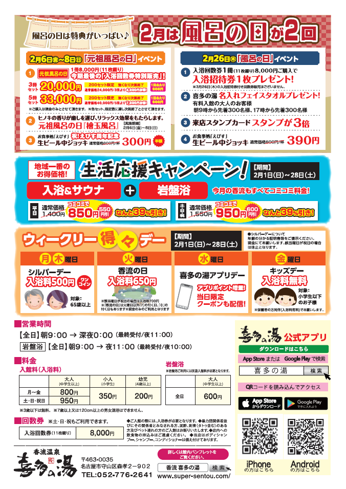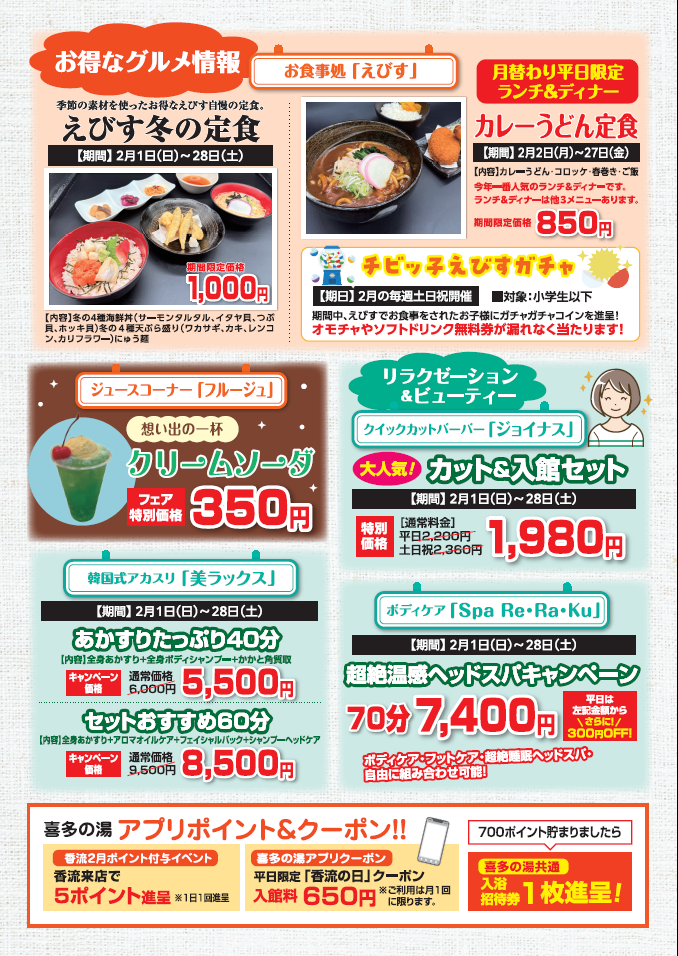 ★2月の喜多の湯通信★のご案内をさせて頂きます。