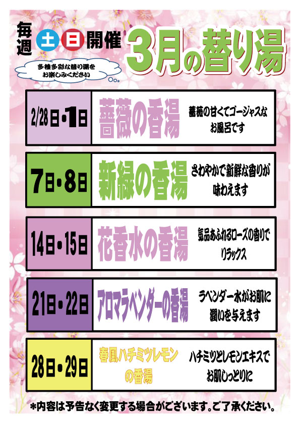 3月替わり湯のご案内