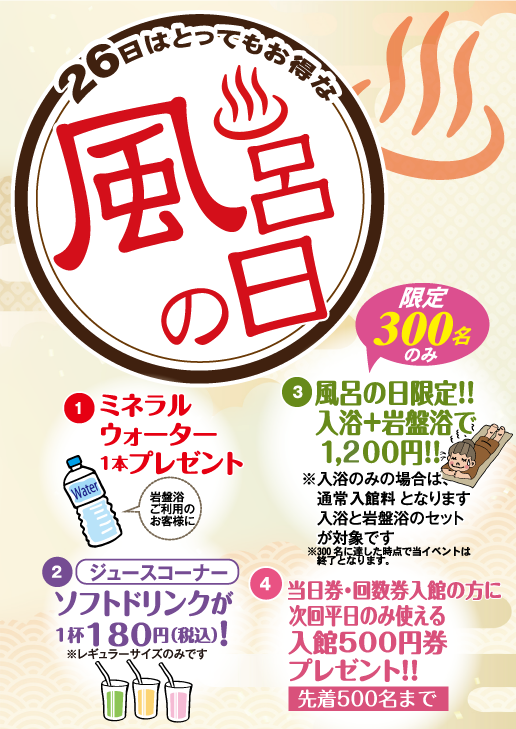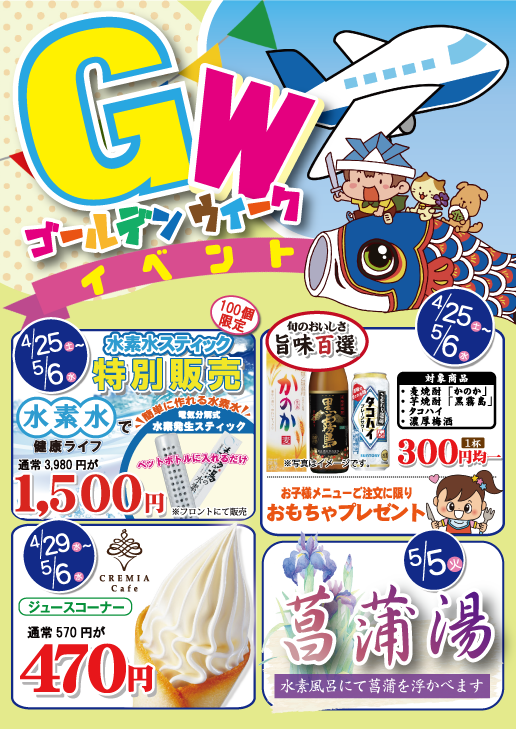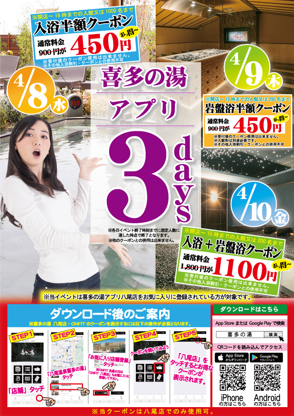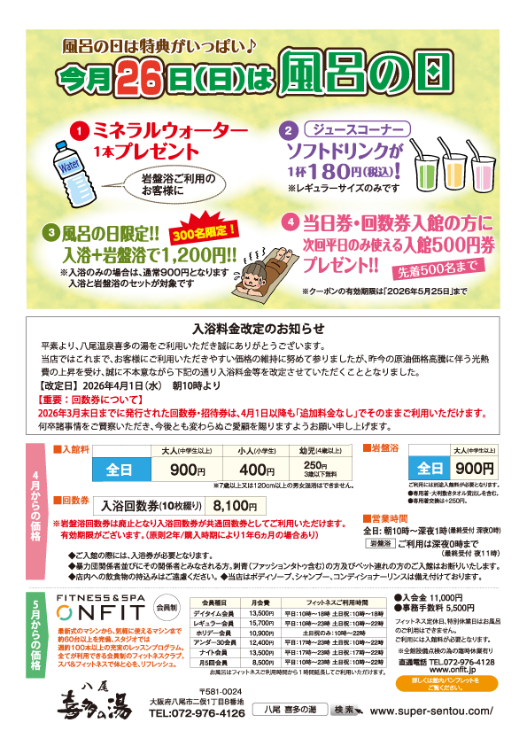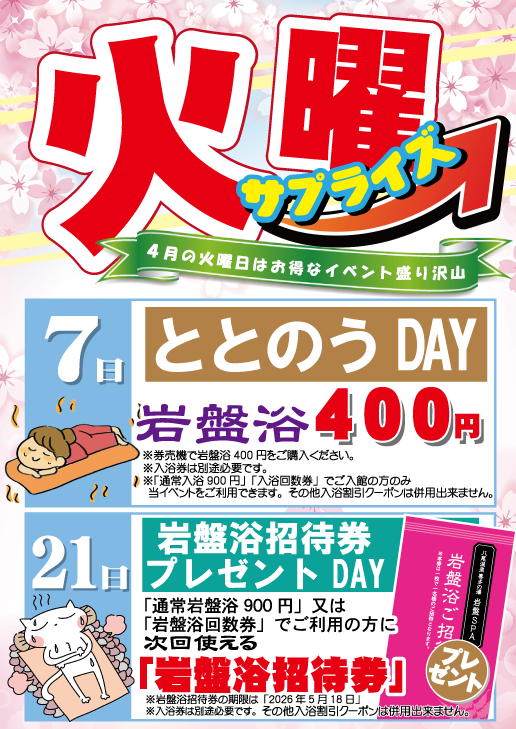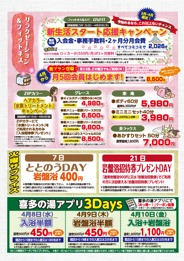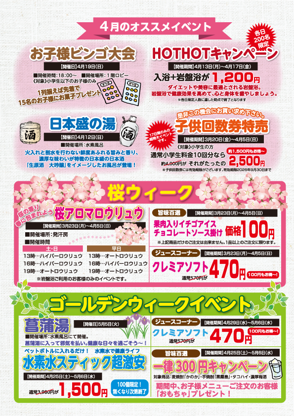 喜多の湯 八尾店の4月イベント情報です。