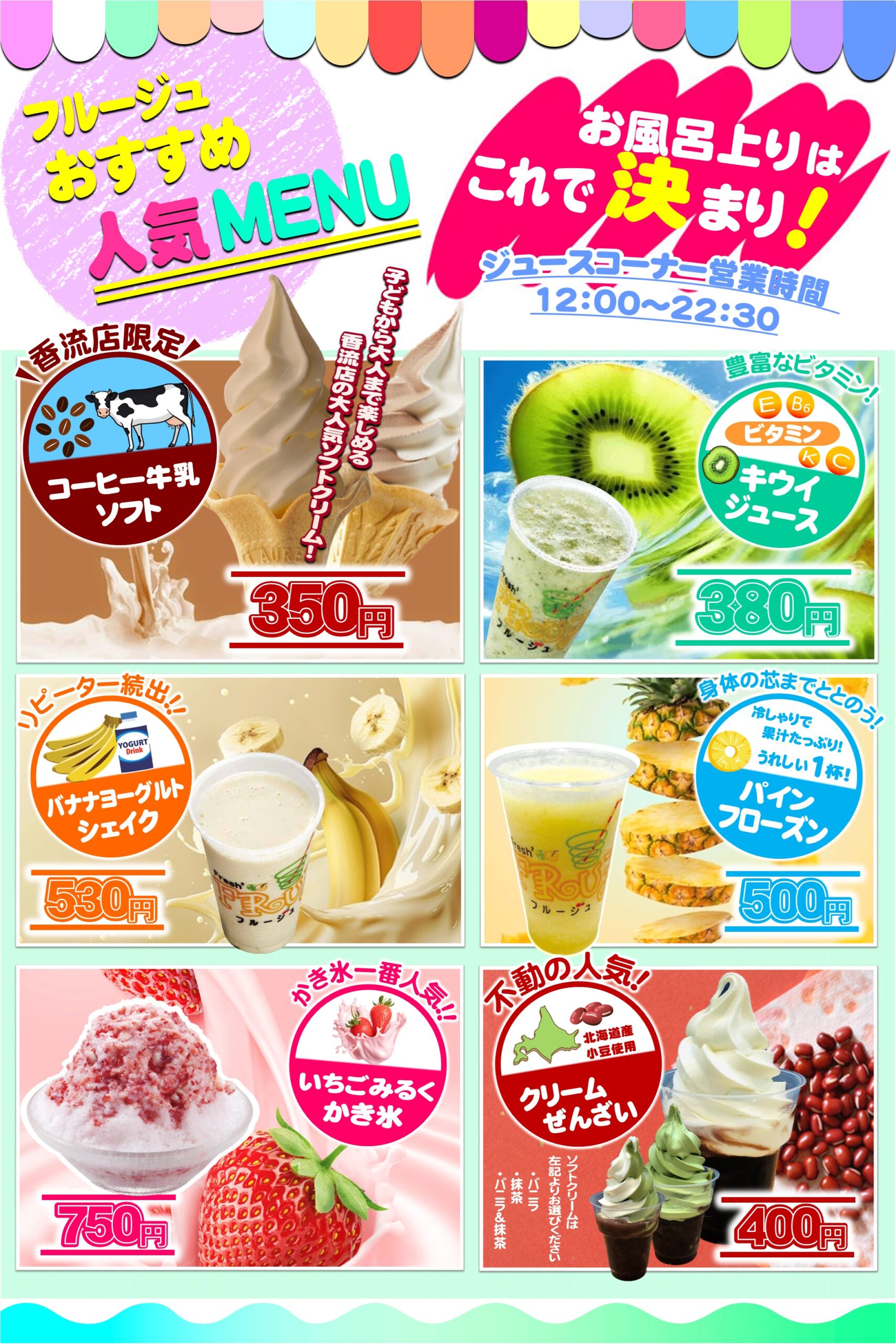 香流温泉では大人気のフルージュコーナーがあります♪