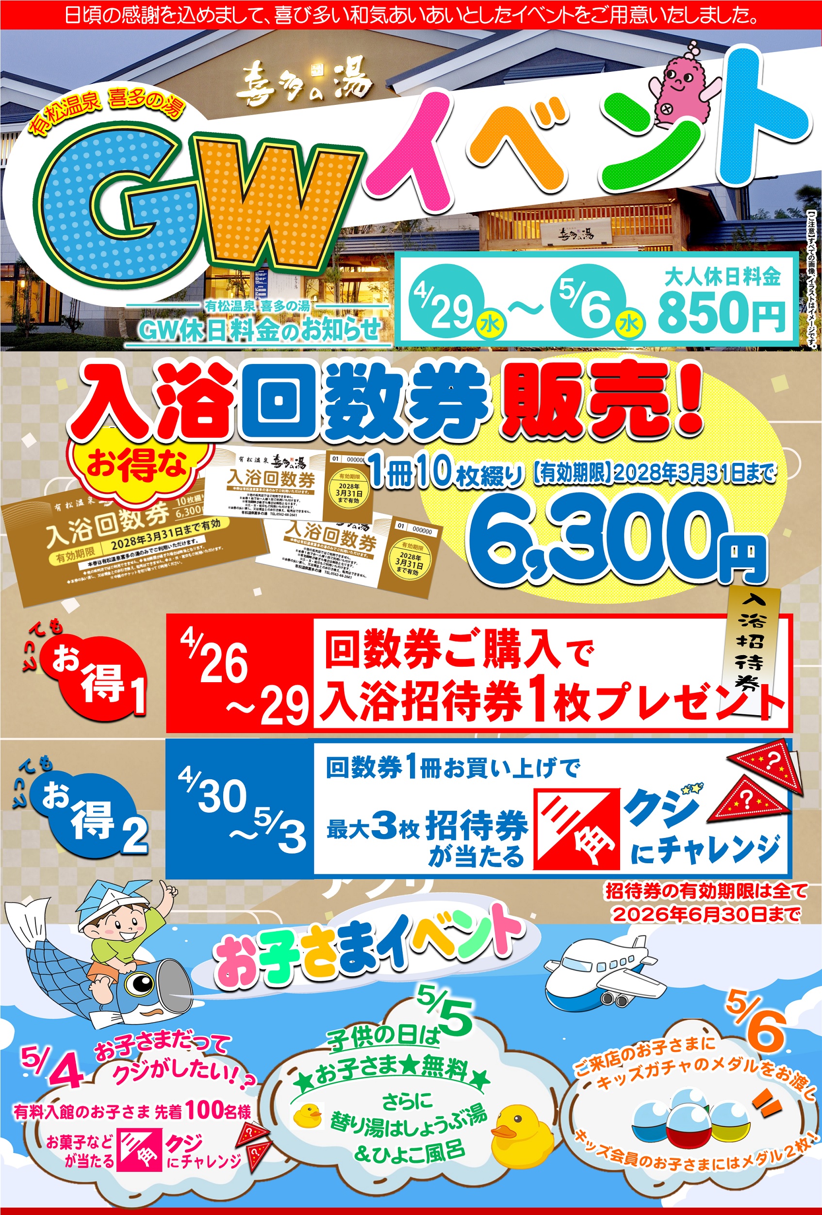 4/26~4/29までは回数券ご購入1冊につき招待券が1枚付きます。