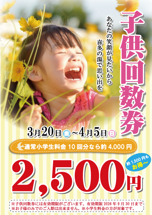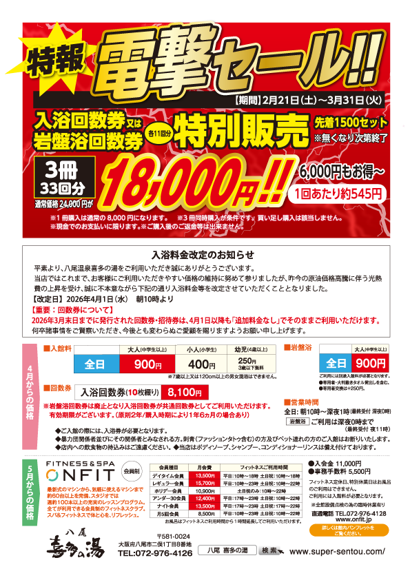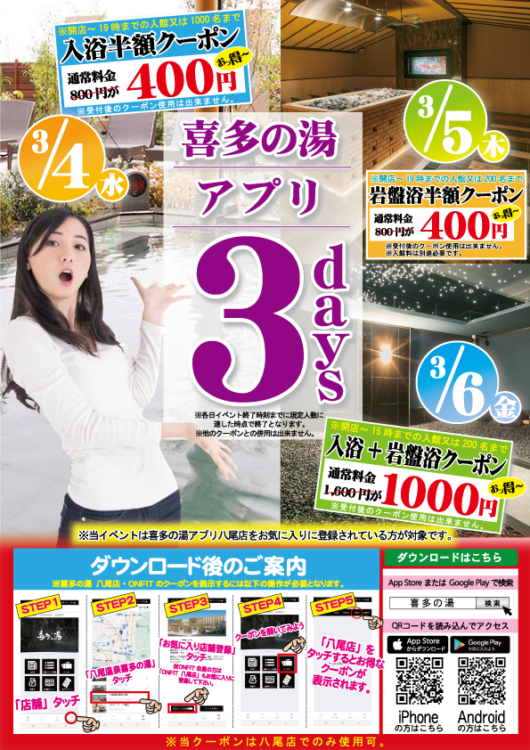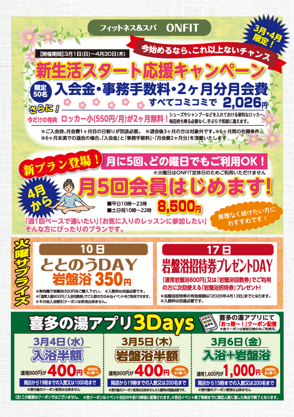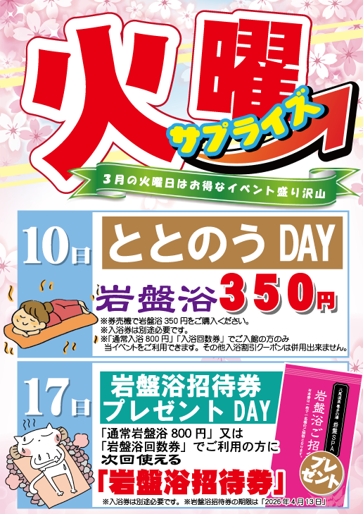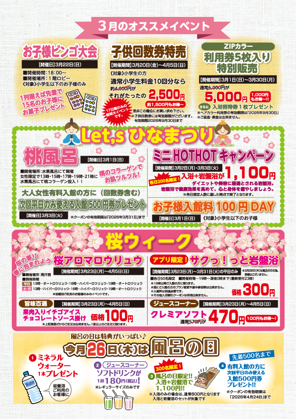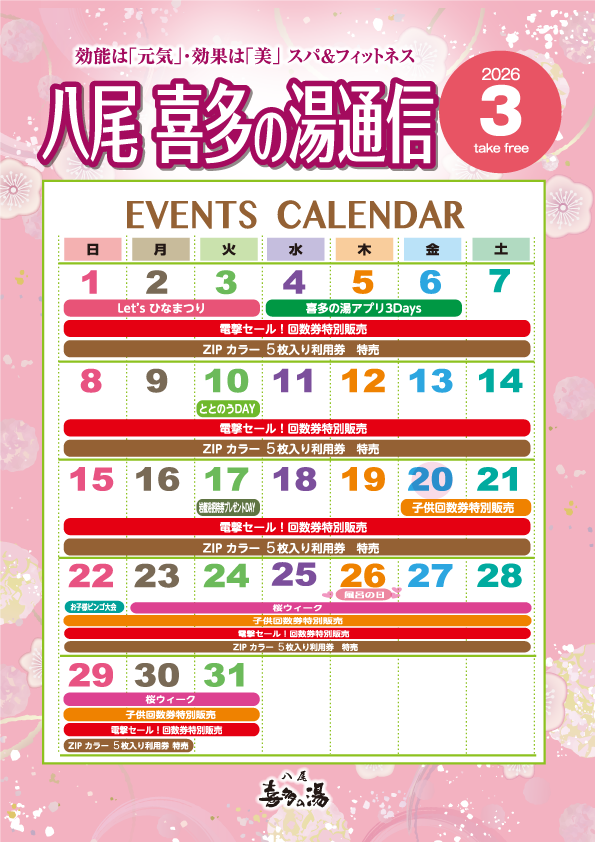 喜多の湯 八尾店の3月イベント情報です。